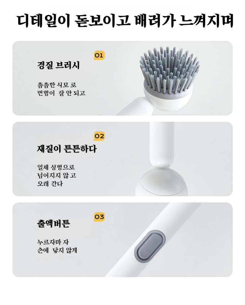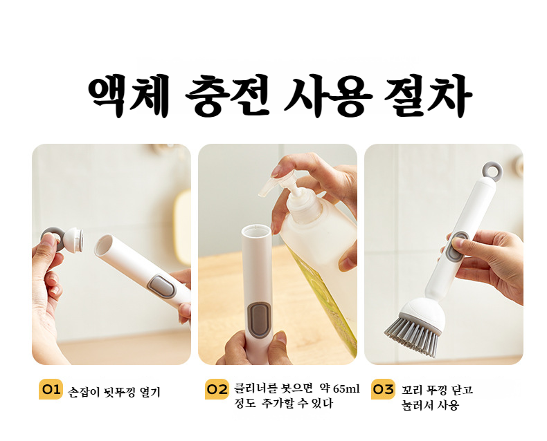 액체 주입형 긴 손잡이 브러쉬 사용 장면