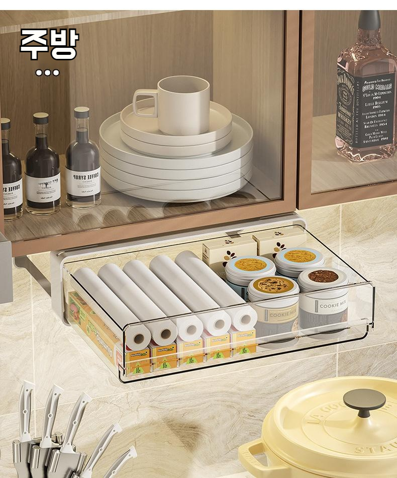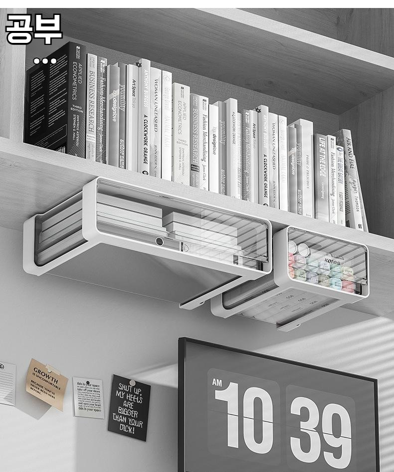 책상 밑 펀치 프리 수납함 문구 작업대 책상 밑 잡동사니 투명 선반